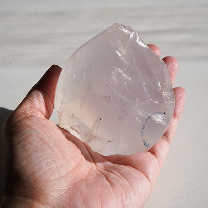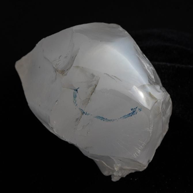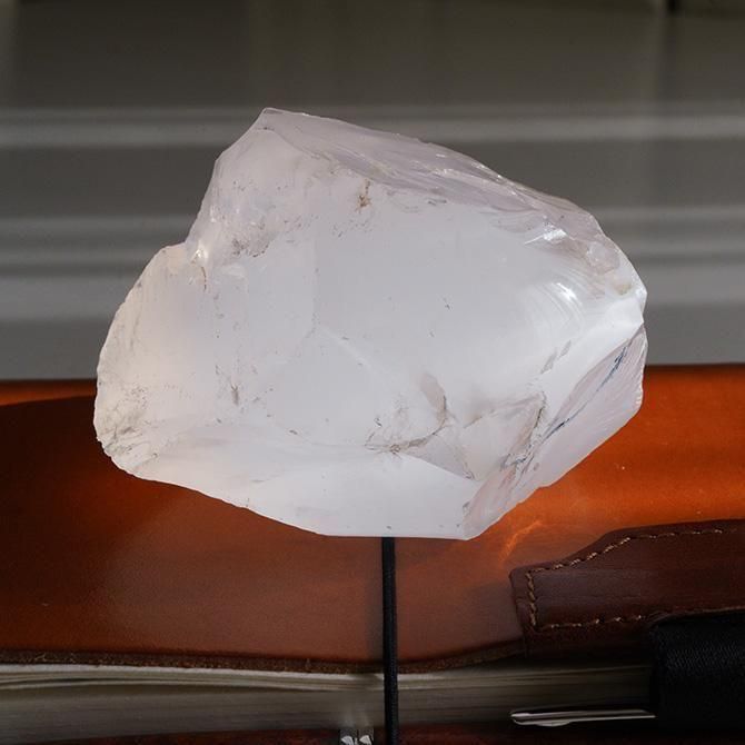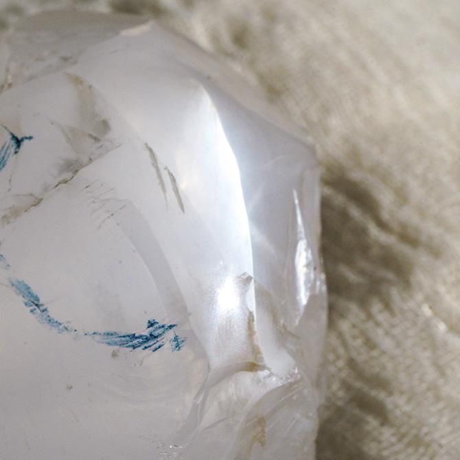メロディ氏の盟友で研磨の監修をされているロバート・ジャクソン氏がつけた、スターが見える部分に印のついたメタモルフォーシスクォーツのかちわり原石です。