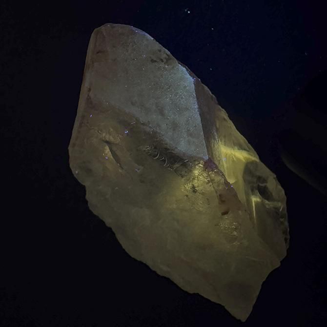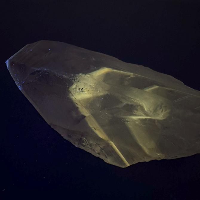 パウエライトとしてはゴールドに蛍光するということから、「クリアなマインドと創造性」「絶望的な状況でも美しさを輝かせる、見出す=見事にスイッチを切り替えて正しく解決する、真の自分を照らす」というようなことが言われています。