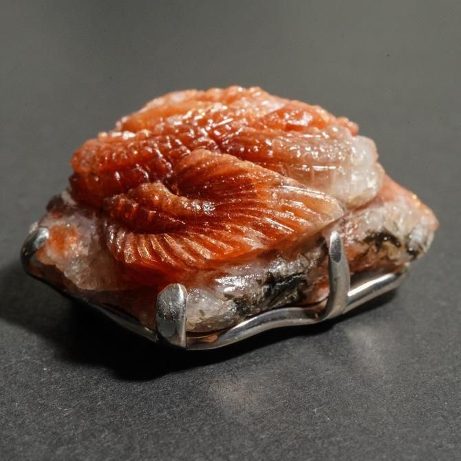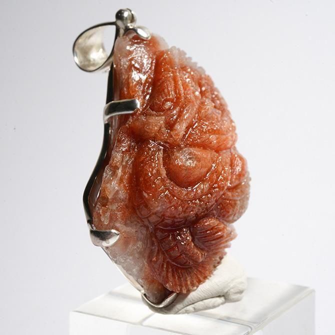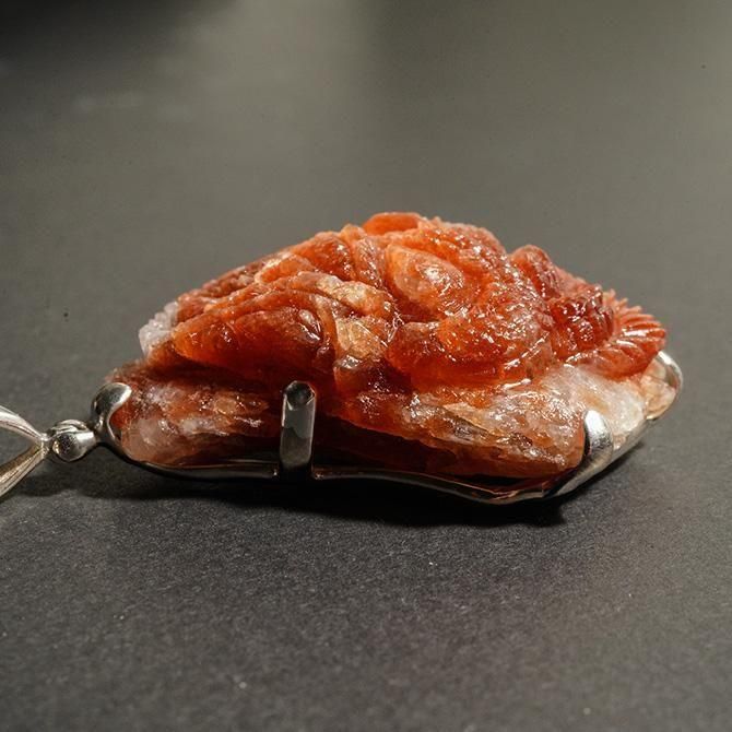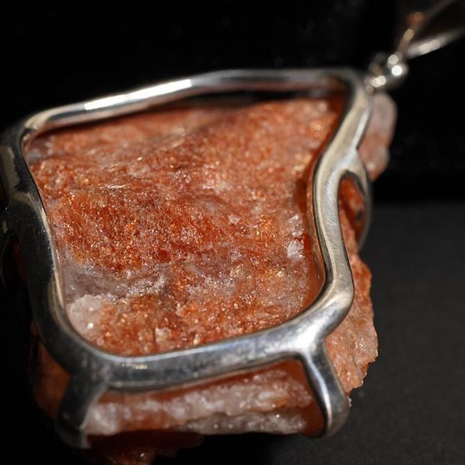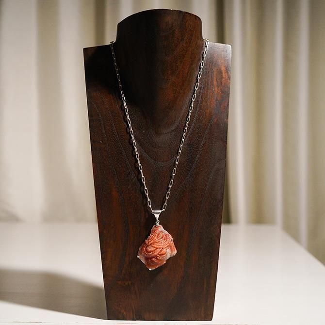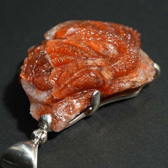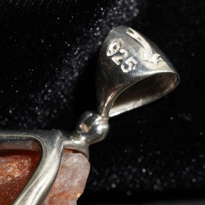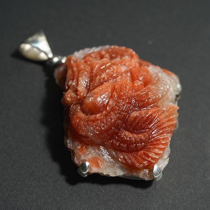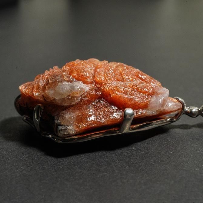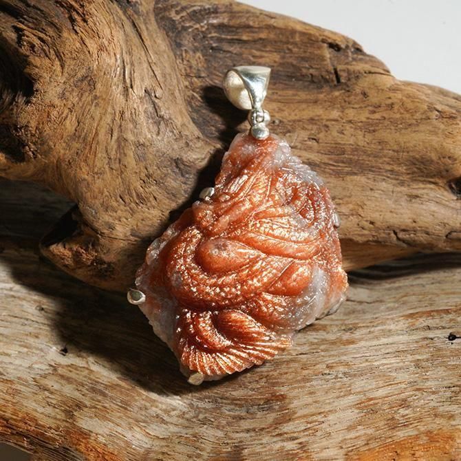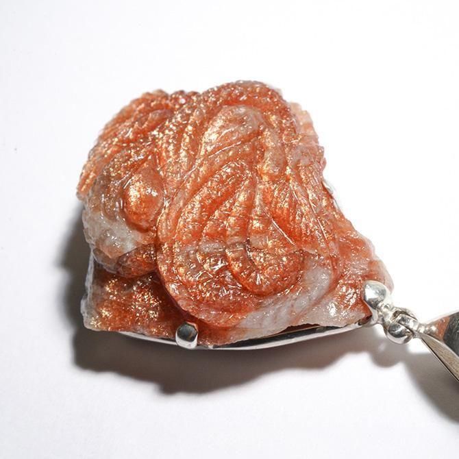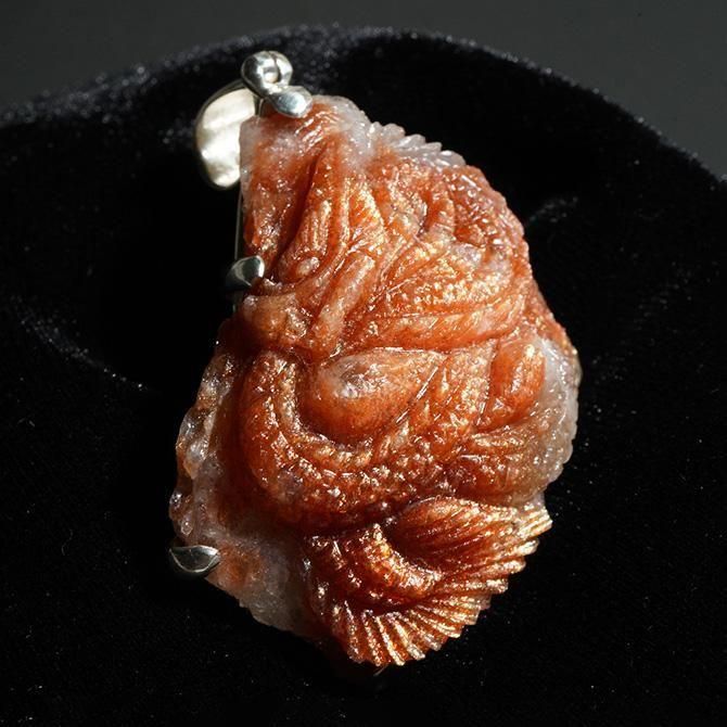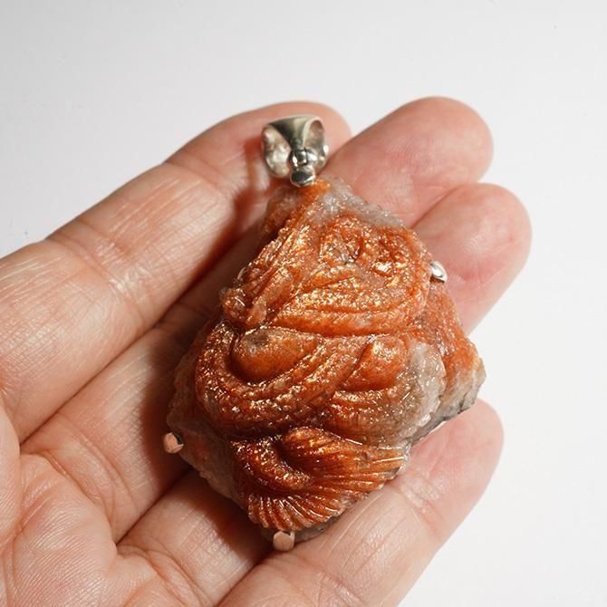 高品質のサンストーンに龍を彫刻し、シルバーでペンダントにしたものです。