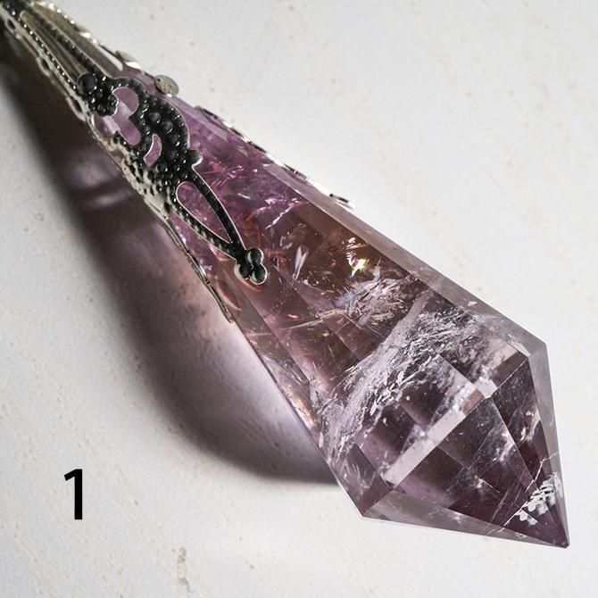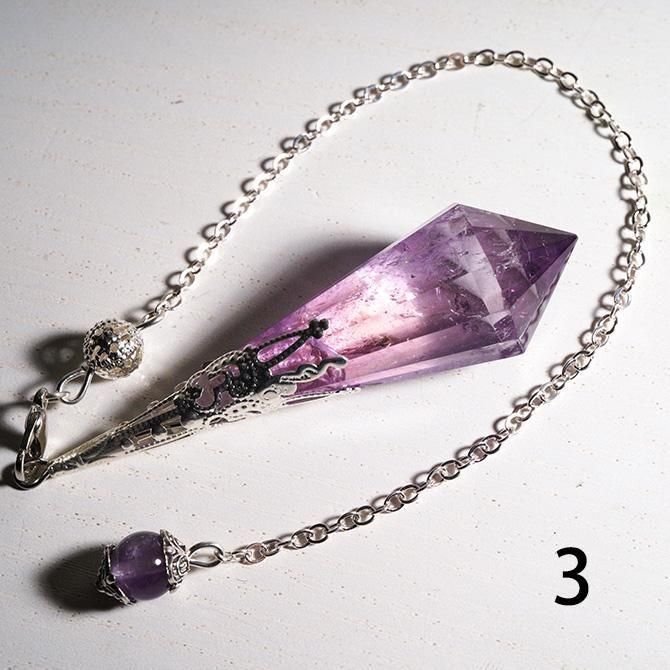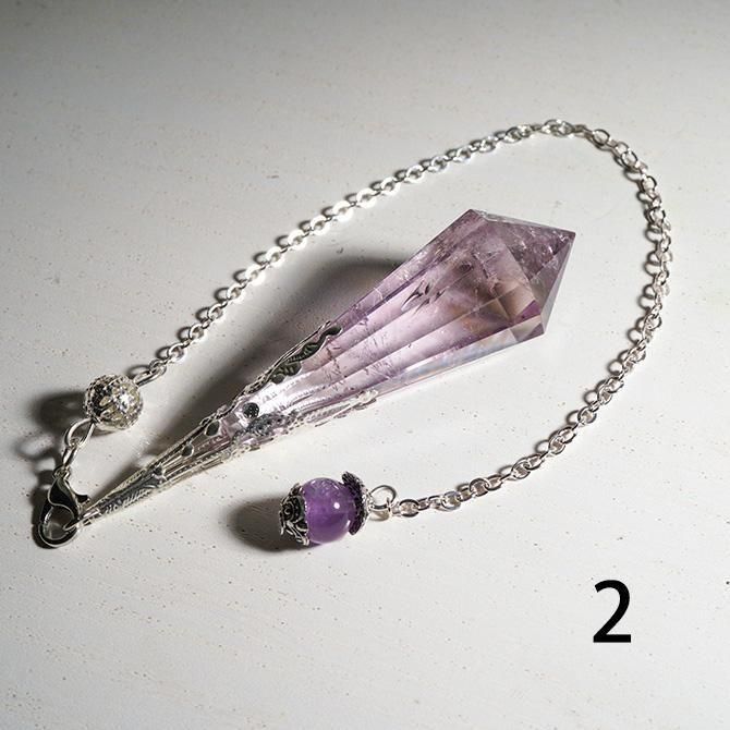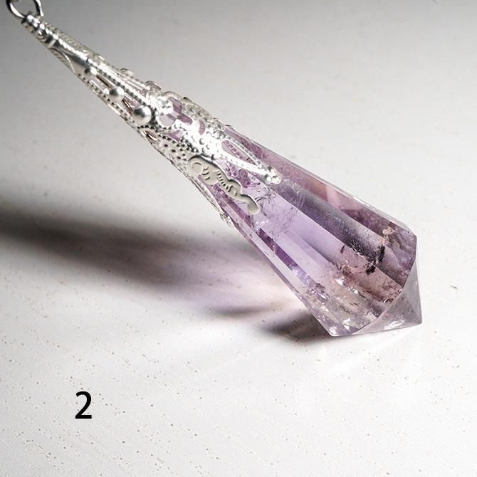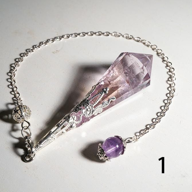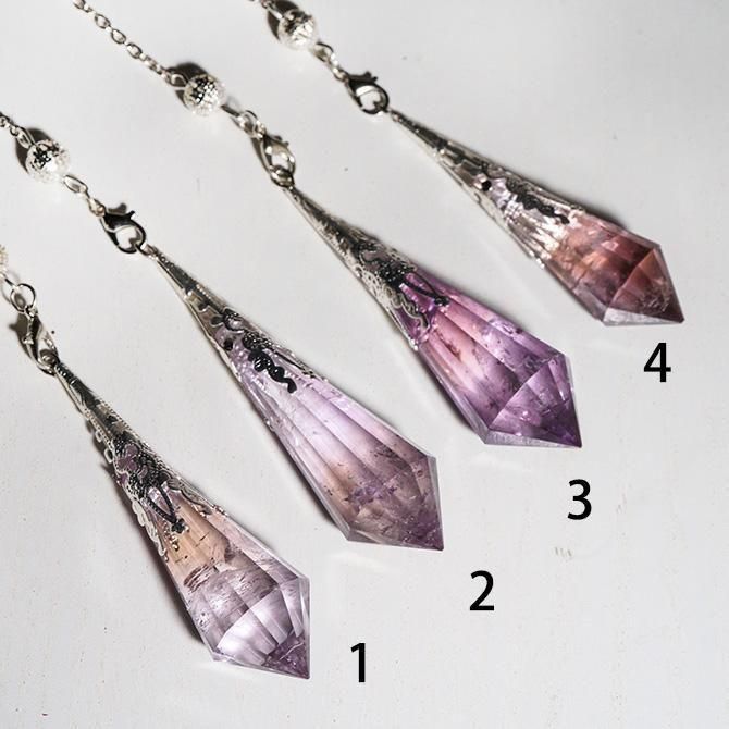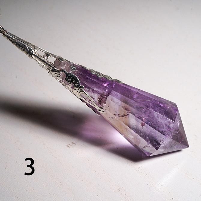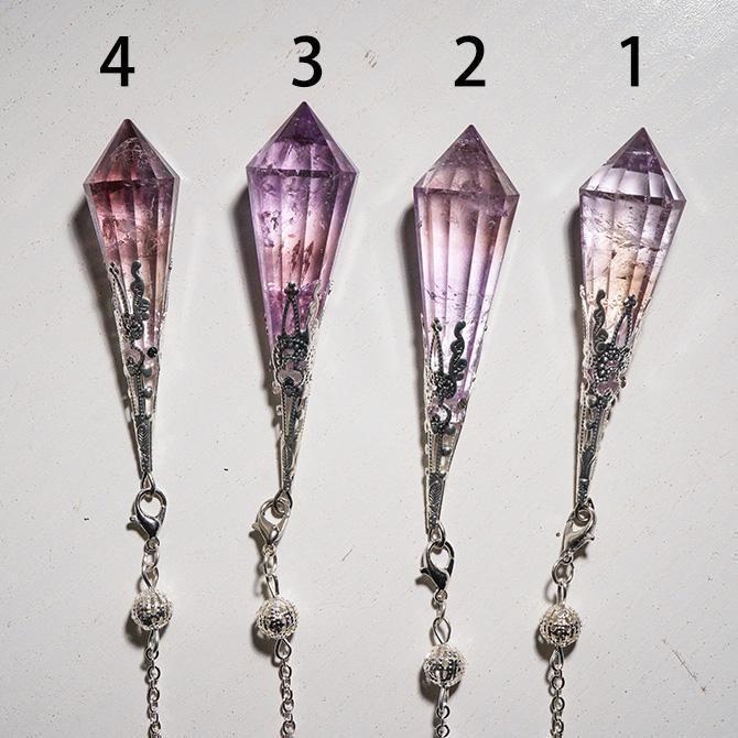 アメトリンを使ってつくられたペンデュラムです。こちらは金具の色がシルバーです。