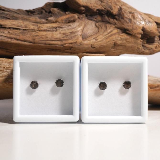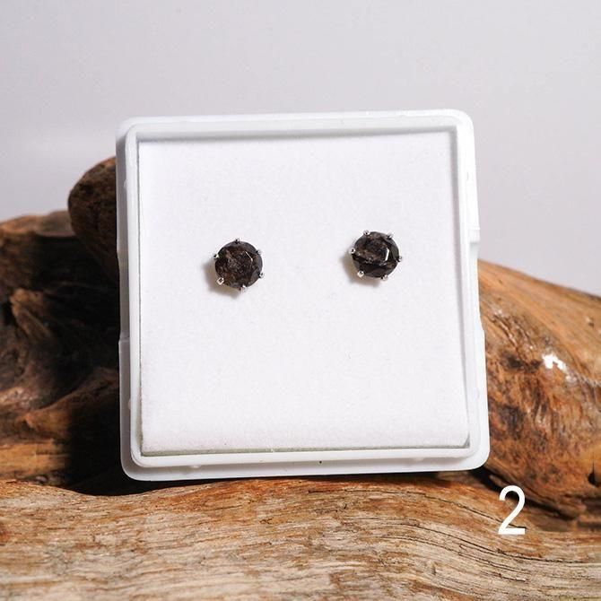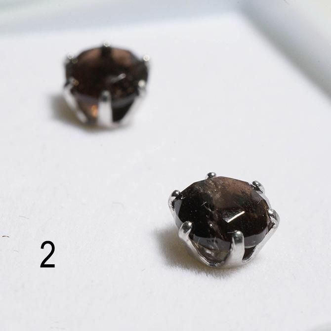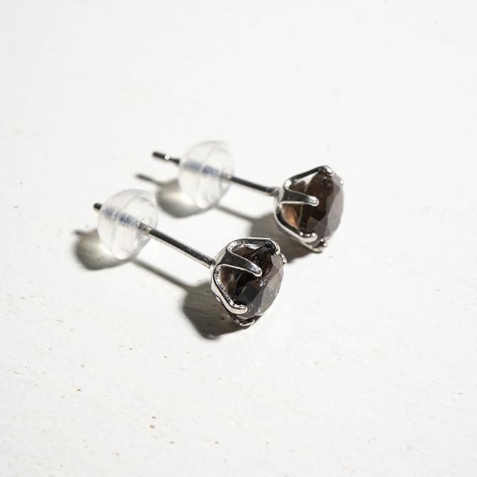 既に鉱山が閉山していて、今は貴重な山梨県黒平産の黒水晶を、ダイヤモンドカットしたピアスです。