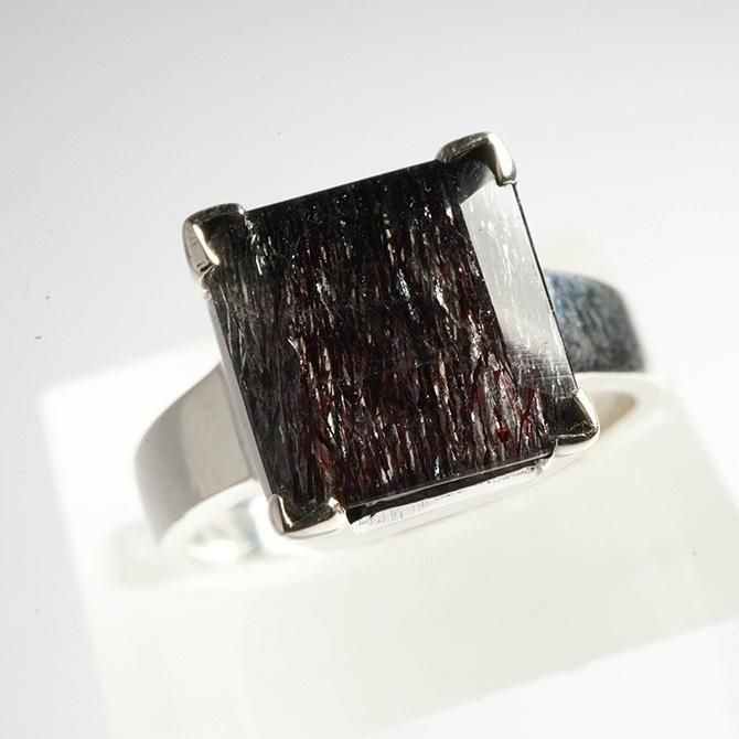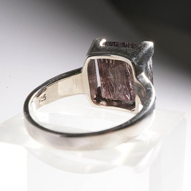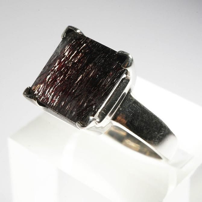 ぱっと見は黒いのですが、光にかざすと赤が美しく見えるルースです。内包物がびっしりです。